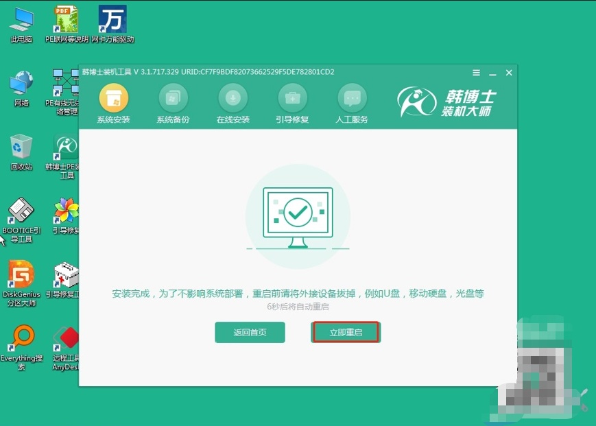 5.安裝過程中,請不要進行其他操作,以確保安裝的穩定性。安裝完成后,點擊“立即重啟”。
